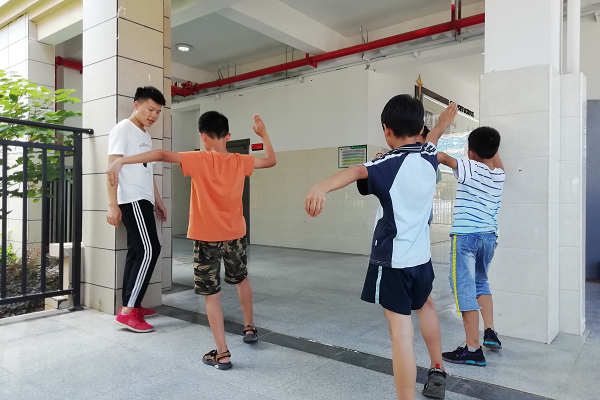 (通讯员 张锋)7月24日10时30分,为准备下周运动会,新葡的京集团8814青传赴湖南省常宁市尚宇学校实践团开展五步拳教学课程。张锋、申娟、蓝扬浚三人担任老师负责教学,班主任朱芸菲辅助。