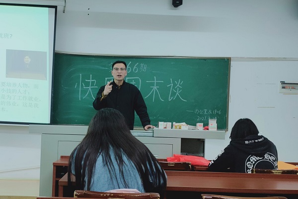 (通讯员 李雨轩)3月28日下午6时,新葡的京集团8814举办的第266期快乐周末谈于化工院117教室召开,化工院副教授周文理作为特邀嘉宾出席此次快乐周末谈。