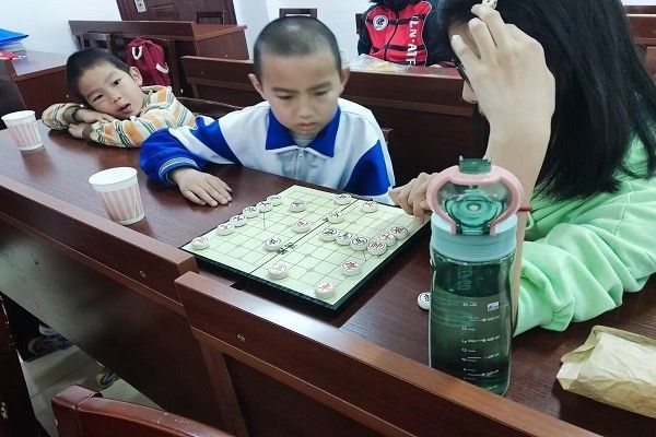 此次活动为“棋乐融融”活动基础篇最后一期,活动分为围棋班和象棋班,围棋班由会员张旒逸担任主讲,象棋班由张芃骏担任主讲。活动中,主讲老师先在黑板上向孩子们讲解主要知识点,由助教用棋具向孩子们进行重难点的进一步讲解。作为棋乐融融基础篇的最后一期活动,主讲老师为孩子们举行了一场分组比赛对四期教学成果进行验收,由助教老师作为裁判对小组赛输赢进行裁断。对弈无论输赢都是一场别样体验,是对脑力的锻炼,也是身心上的放松。志愿者们表示,希望在基础篇四期结束后孩子们能有所收获、有所成长。活动最后,孩子们与志愿者进行合影留念。