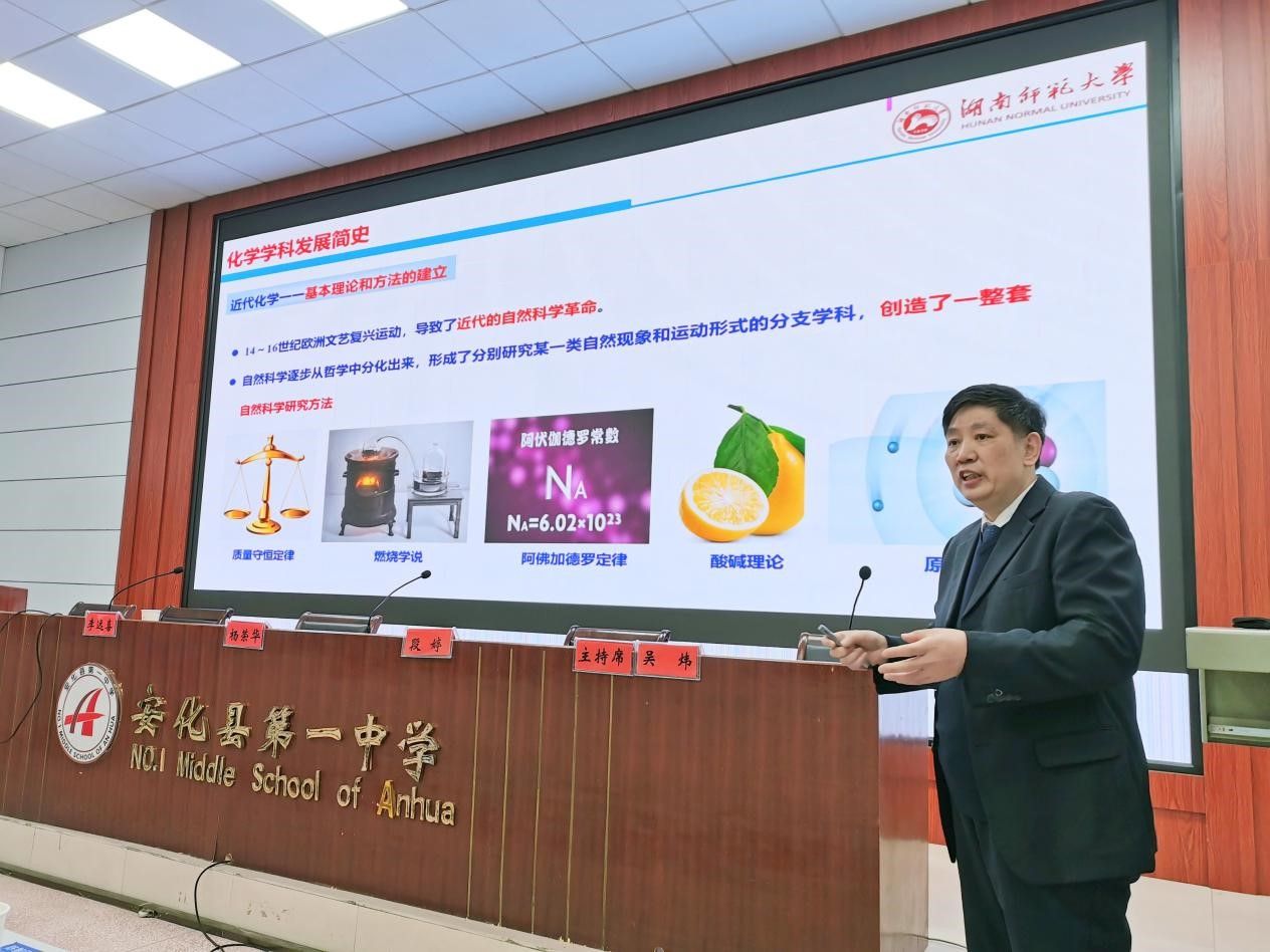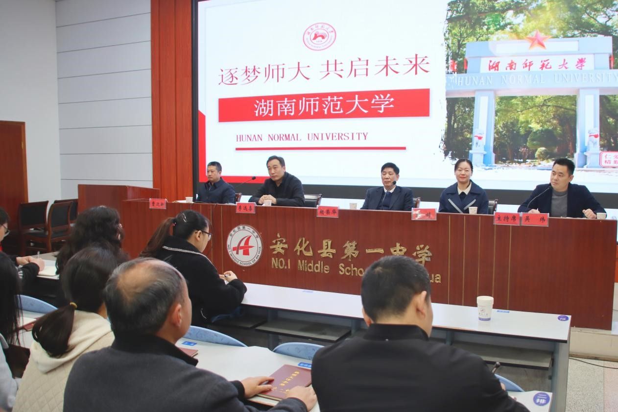 (通讯员 唐健清)为认真贯彻落实党中央、国务院关于高校毕业生就业工作决策部署,助推学院2023届毕业生实现高质量就业,4月24日,新葡的京集团8814院长、教育部“长江学者”特聘教授、国家杰出青年科学基金获得者杨荣华教授,学院党委副书记段婷来到沅陵一中开展“访企拓岗”专项行动,并进行新葡的京集团8814名师进中学暨优质生源基地授牌仪式,就学生实习、就业等相关内容进行深入交流。安化一中党委副书记、副校长李远喜,副校长吴炜,督学曹迎新以及学校领导班子成员出席此次活动,部分师生代表参加活动。