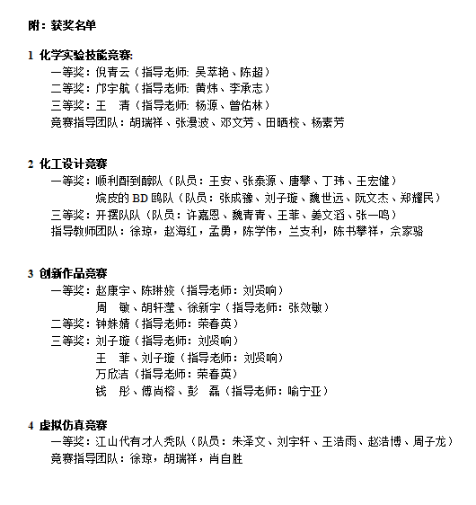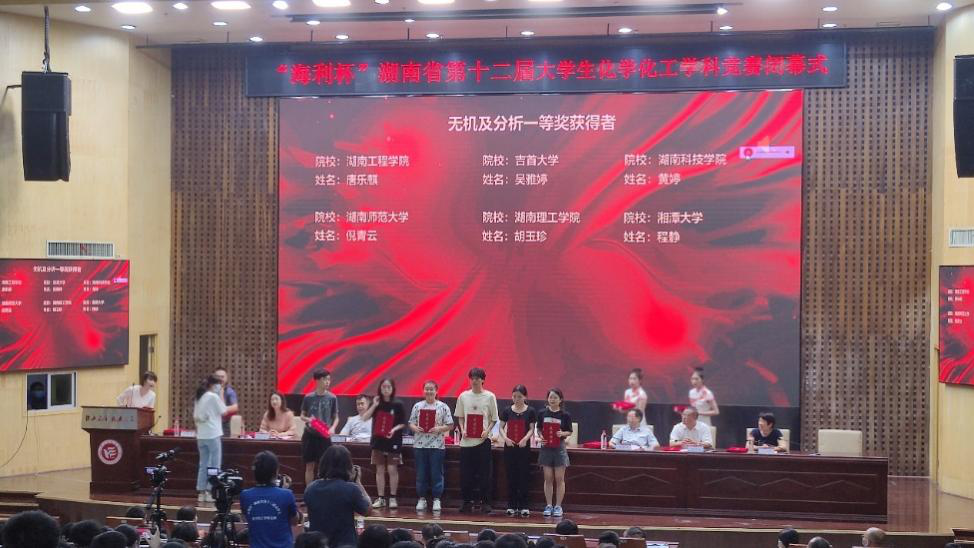 7月21-23日,湖南省教育厅主办、湖南省化学化工学会和湖南省大学生学科竞赛委员会协办、湖南工程学院承办的湖南省第十二届大学生化学化工学科竞赛暨化学实验教学与实验室建设研讨会举行,我校新葡的京集团8814学子取得参赛以来历史最佳成绩,喜获一等奖6项、二等奖2项和三等奖6项。
